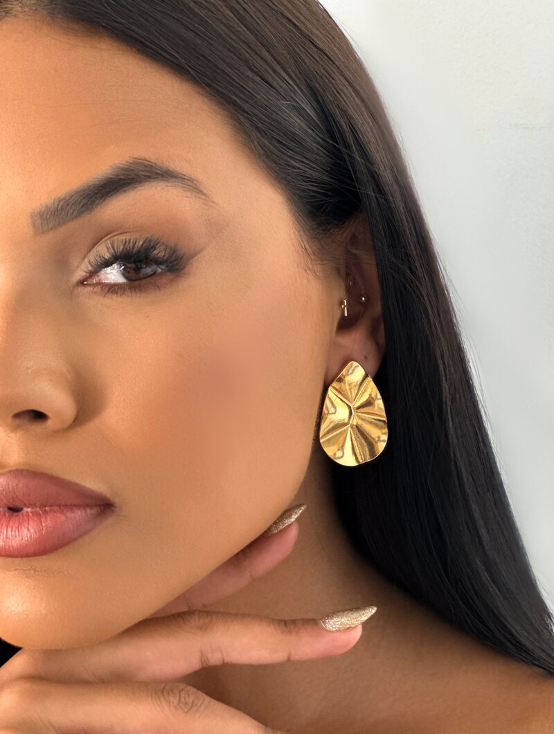 3. Brinco Folheado a Ouro 18K Gota Martelada