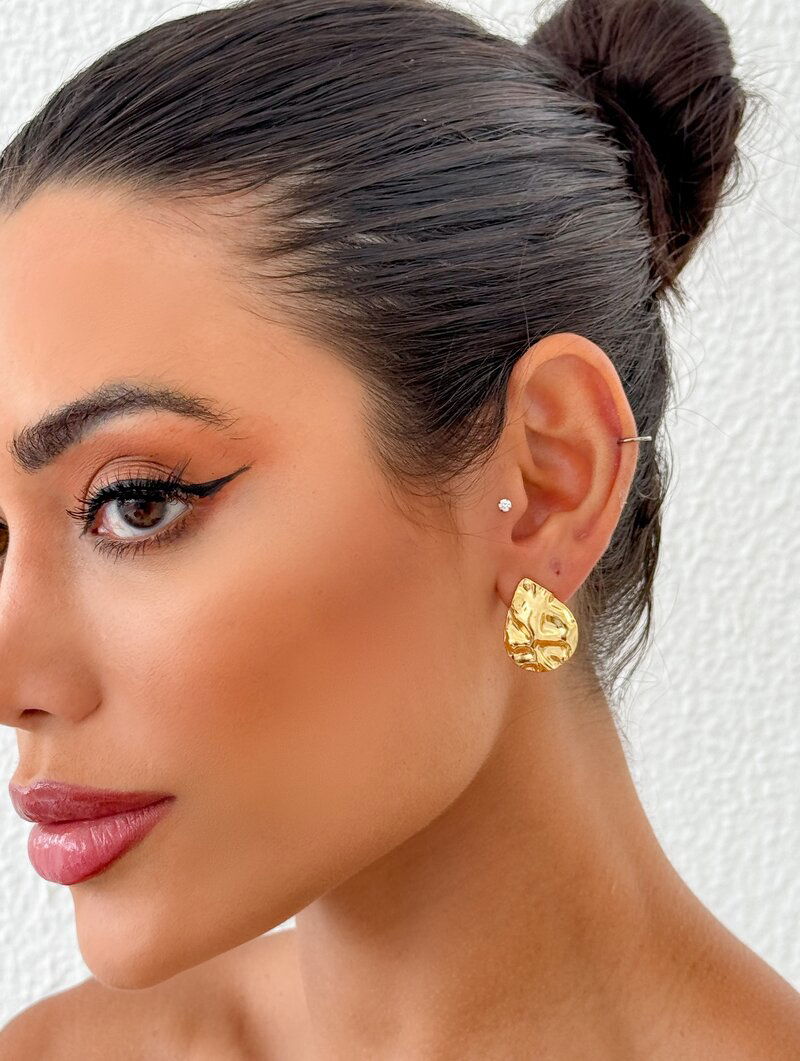 3. Brinco Folheado a Ouro 18k Gota Martelada