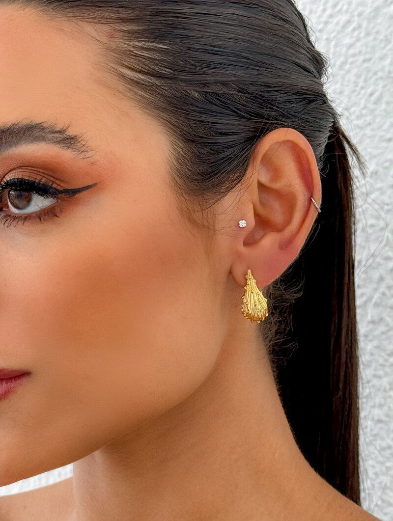 3. Brinco Folheado a Ouro 18k Gota Texturizada