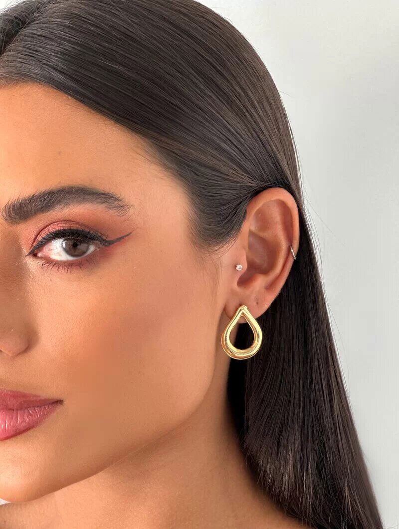 3. Brinco Folheado a Ouro 18K Gota Vazada