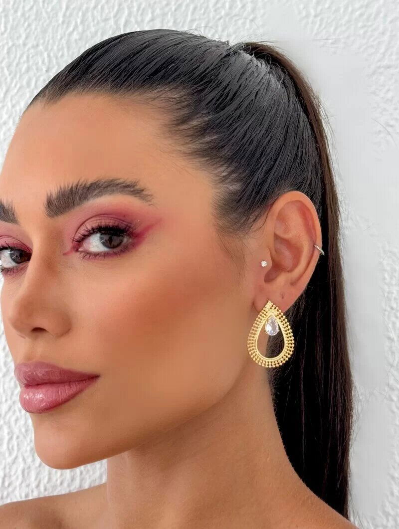 3. Brinco Folheado a Ouro 18k Gota Vazada com Zircônia
