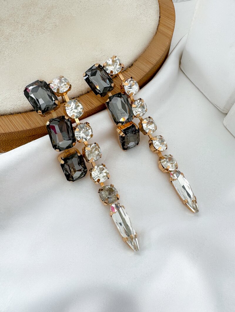 3. Brinco Folheado a Ouro 18k Longo com Pedras de Chatton