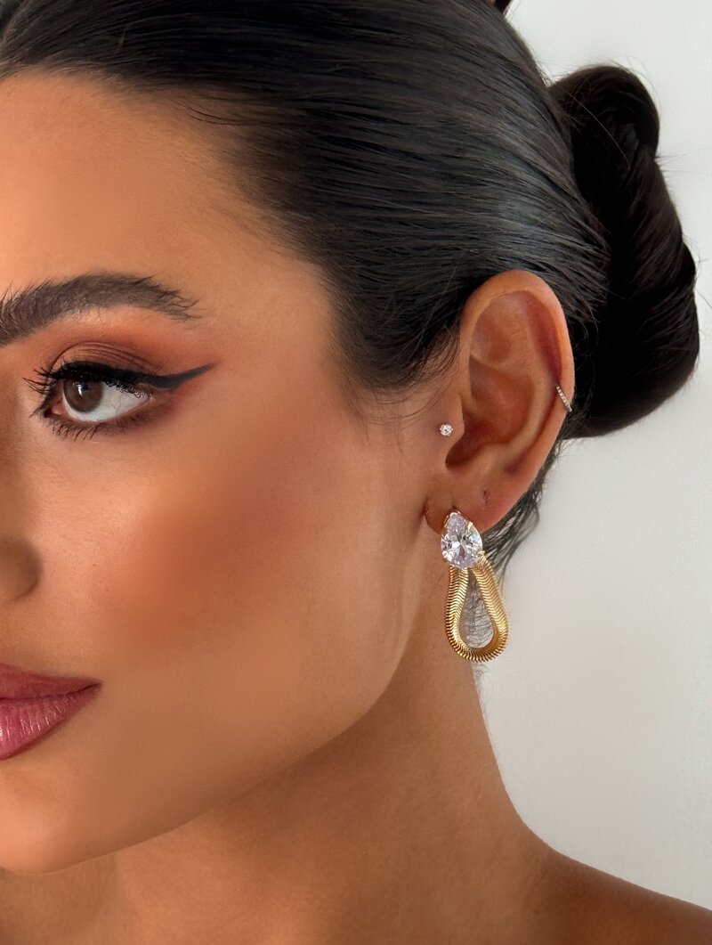 3. Brinco Folheado a Ouro 18k Malha com Gota de Zircônia