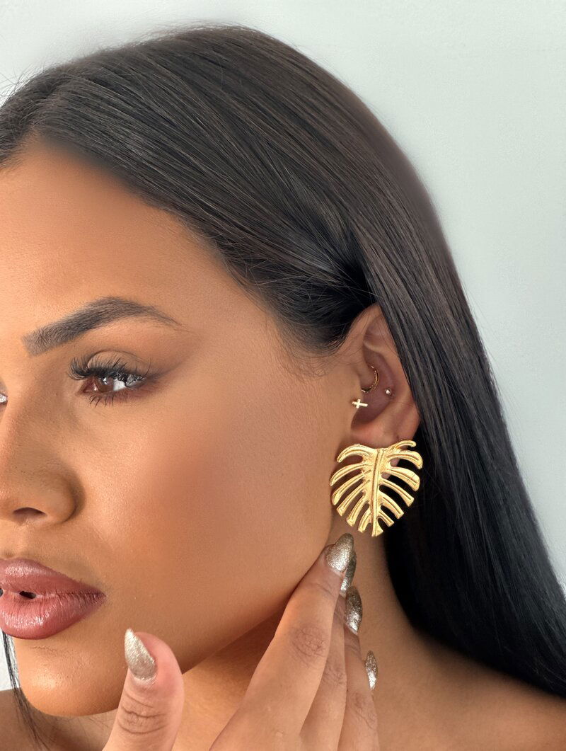 3. Brinco Folheado a Ouro 18k Maxi Folha