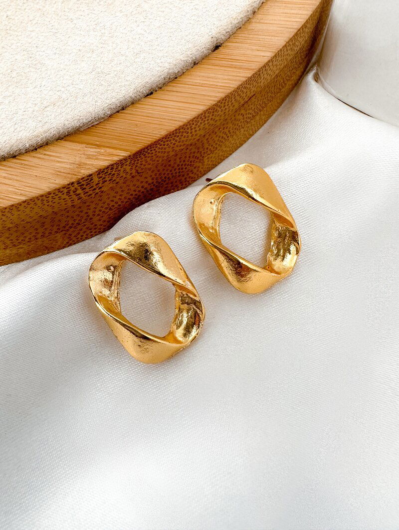 3. Brinco Folheado a Ouro 18k Oval Martelado