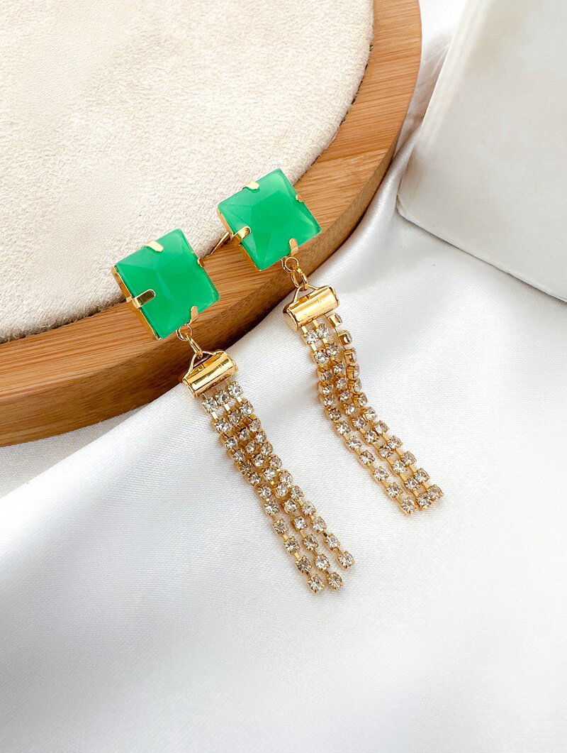 Brinco Folheado a Ouro 18k Pedra de Zircônia com Franja