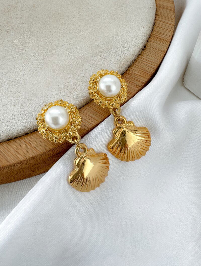 Brinco Folheado a Ouro 18k Pérola com Concha