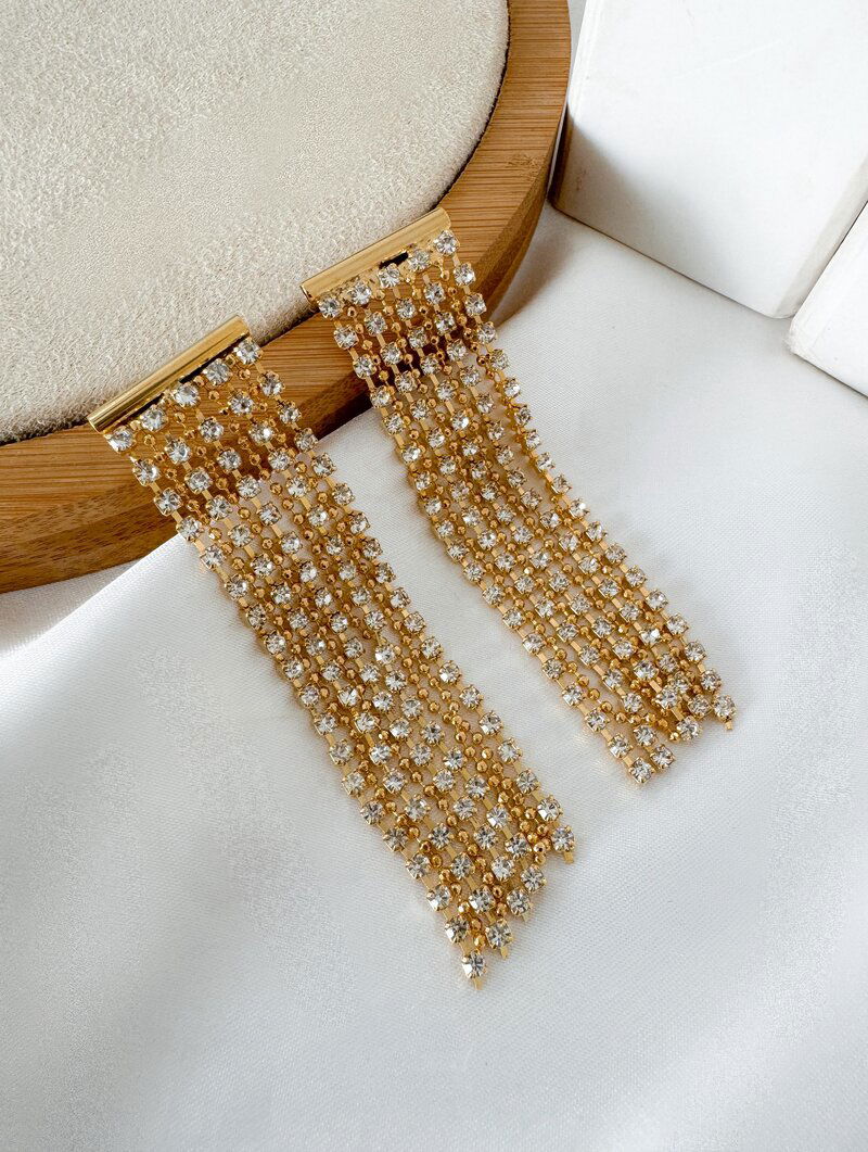 Brinco Folheado a Ouro 18k Ponteira Reta com Franja e Zircônias