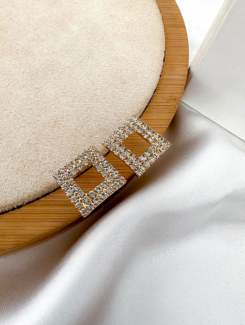 Brinco Folheado a Ouro 18k Quadrado Cravejado