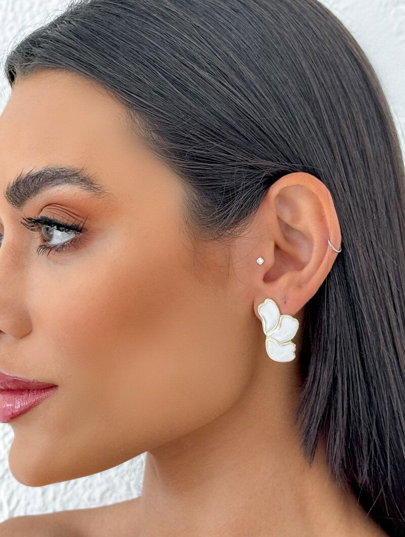 Brinco Folheado a Ouro 18k Três Pétalas Resinadas