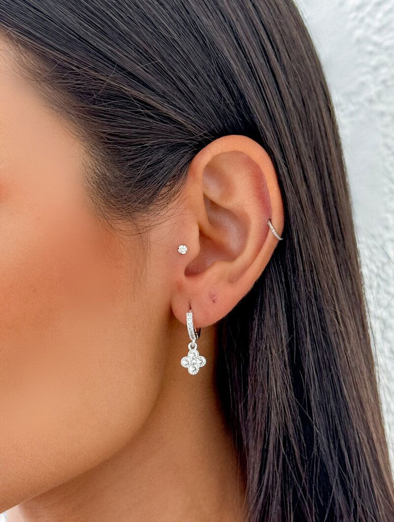 3. Brinco Folheado a Prata 925 Argolinha Cravejada com Pingente Inspiração