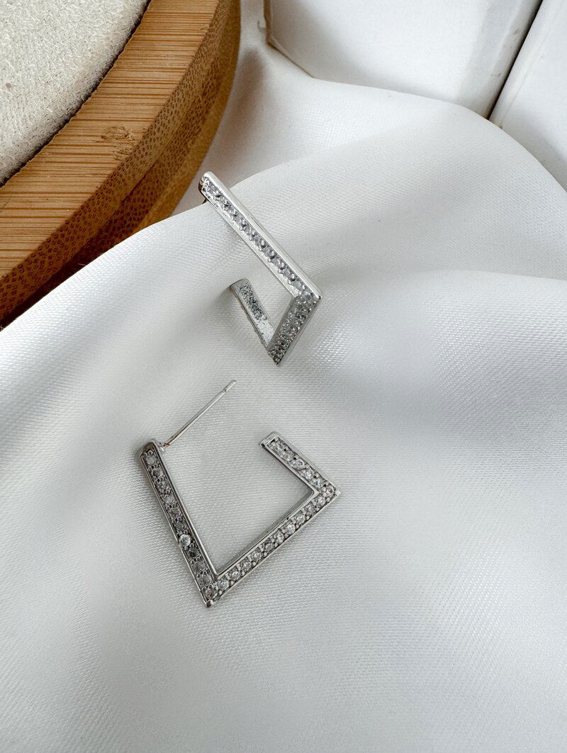 3. Brinco Folheado a Prata Argola Geométrica Cravejada