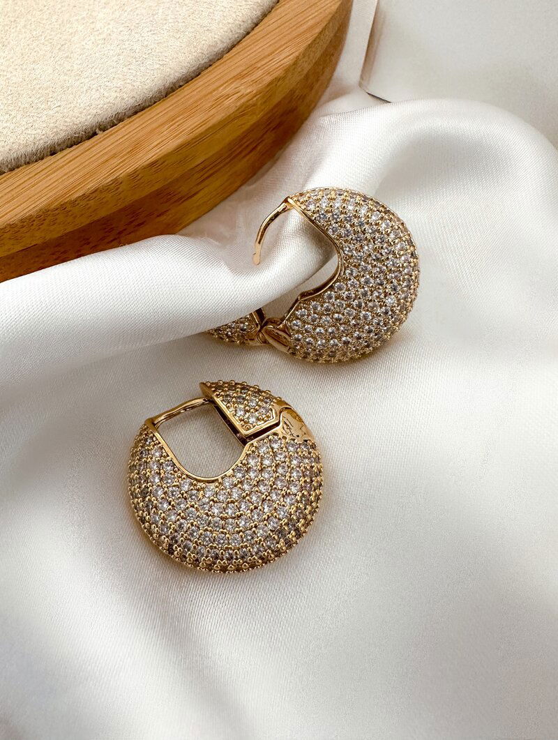 3. Brinco Folheado a Prata Argola Luxo Cravejada