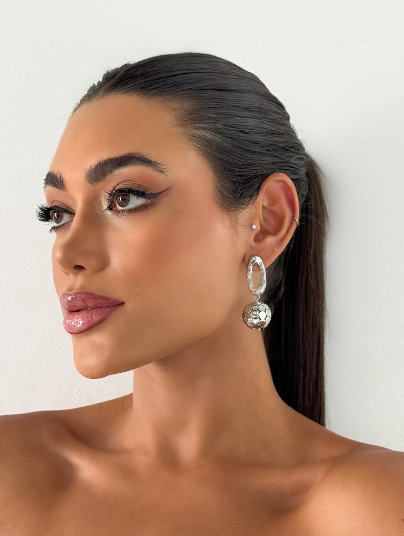 3. Brinco Folheado a Prata Argola Oval com Esfera Vazada