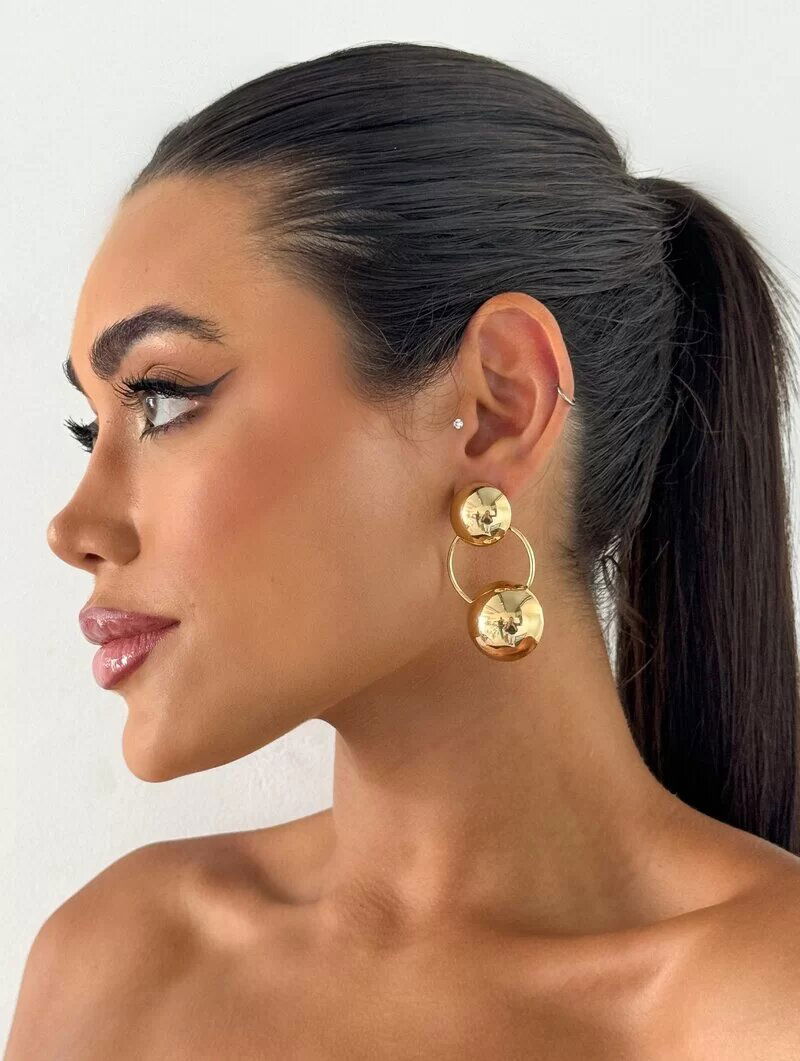 3. Brinco Folheado a Prata Bottons Lisos com Argola Central