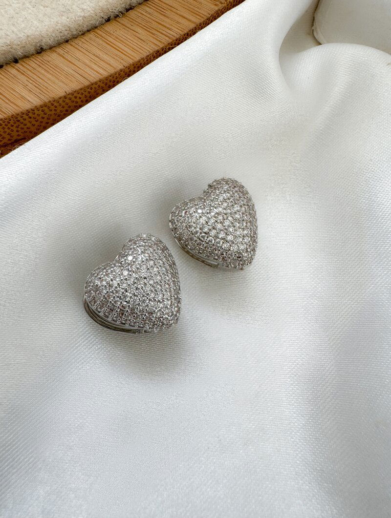 3. Brinco Folheado a Prata Coração Cravejado Fecho Click