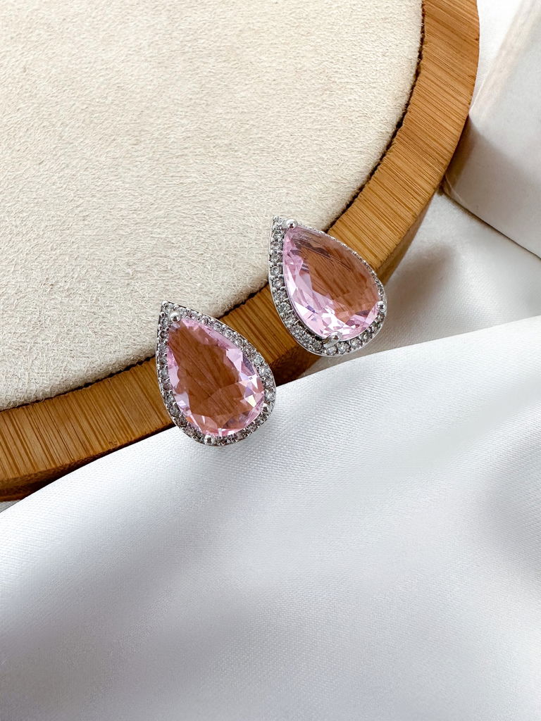 brinco folheado a prata gota de zircônia