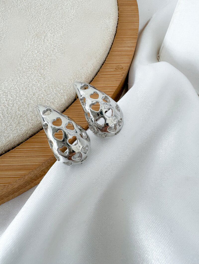 Brinco Folheado a Prata Gota Vazada com Corações P