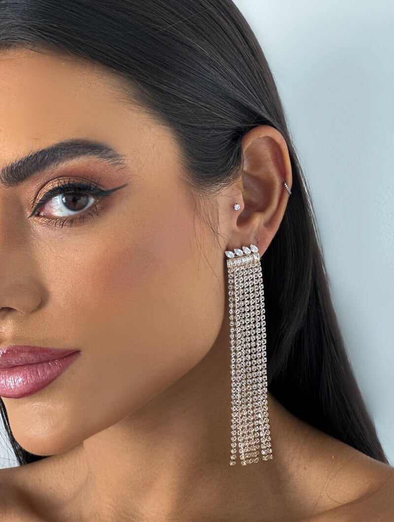 3. Brinco Folheado a Prata Ponteira de Navetes e Gota com Franja de Zircônia