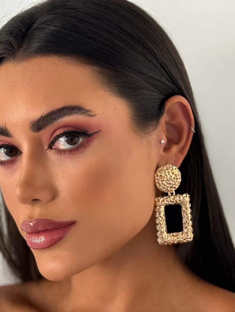 3. Brinco Folheado a Prata Retangulo com Ponteira Martelada