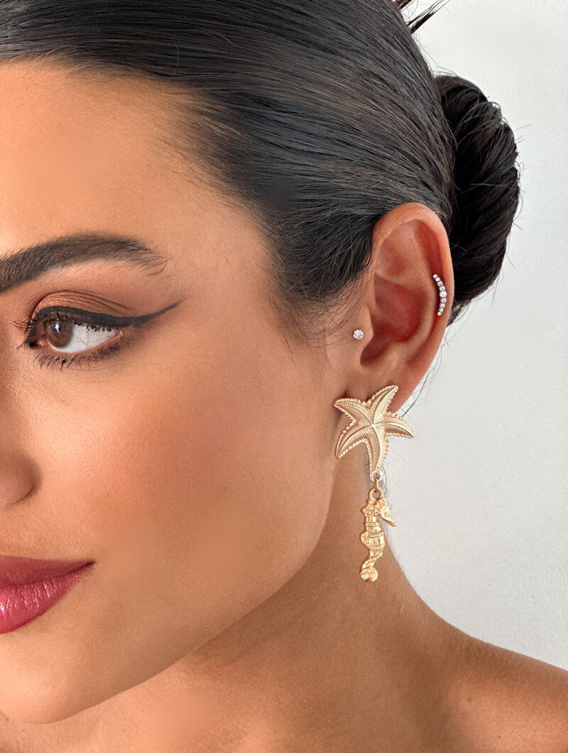 3. Brinco Semi Joia Estrela com Cavalo Marinho