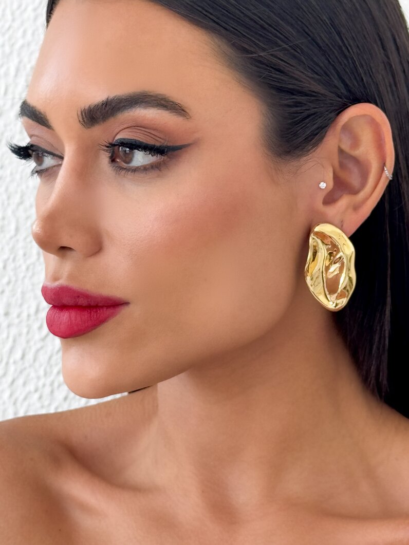 Brincos Folheado a Ouro 18k e Prata Orgânico martelado