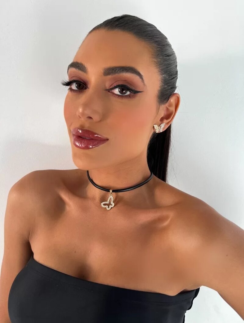 3. CHOKER COURINHO COM PINGENTE BORBOLETA VAZADA COM MICRO ZIRCÔNIAS .