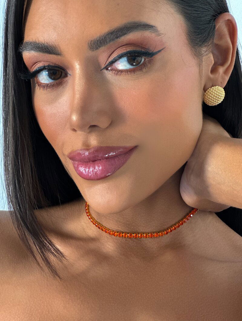 3. Choker de cristais folheado a ouro 18k e prata 925.
