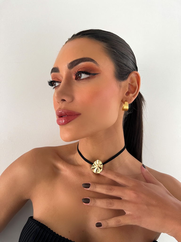 CHOKER FOLHEADA A OURO 18K BOTTON MARTELADO