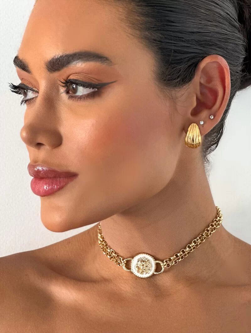 3. Choker Folheada a Ouro 18k Dois Fios com Pingente Leão