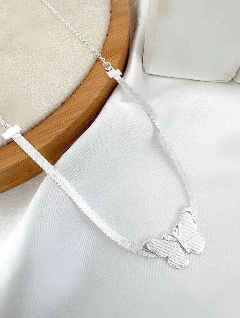 choker folheada a ouro 18k e prata 925 fita laminada com borboleta