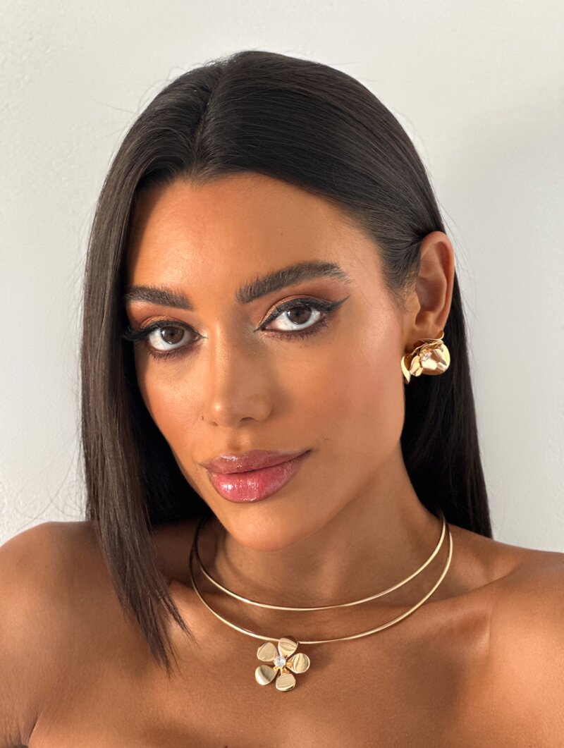Choker Folheada a Ouro 18k e Prata Aro Duplo com Flor