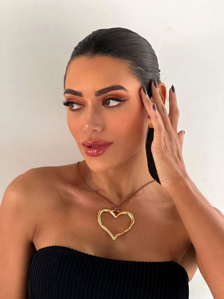 CHOKER FOLHEADA A OURO 18K E PRATA CORAÇÃO VAZADO MARTELADO