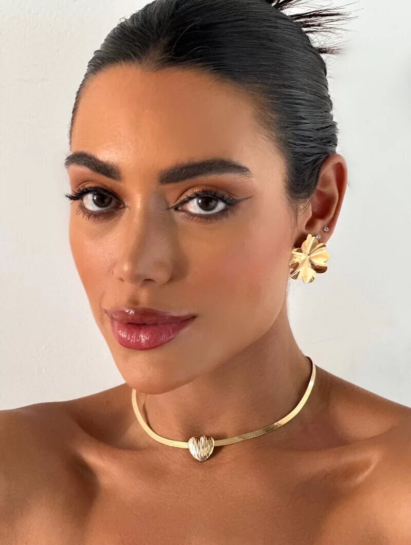 3. Choker Folheada a Ouro 18k e Prata Fita Laminada com Coração Escovado