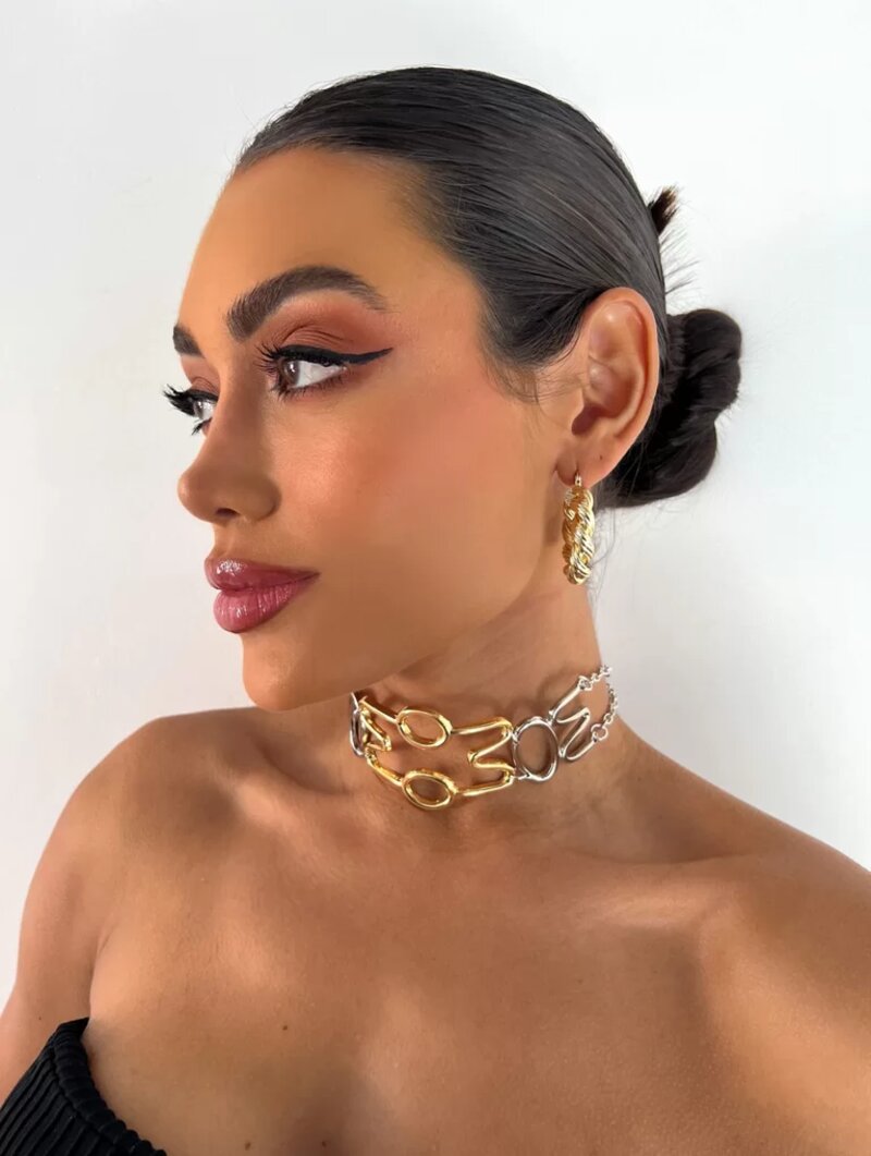 CHOKER FOLHEADA A OURO 18K E PRATA MAXI BLOGGER.