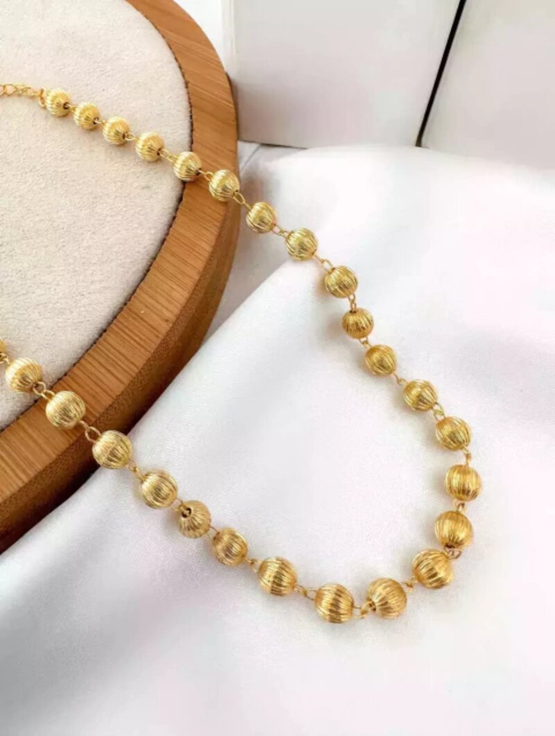 3. choker folheada a ouro 18k esferas texturizadas.