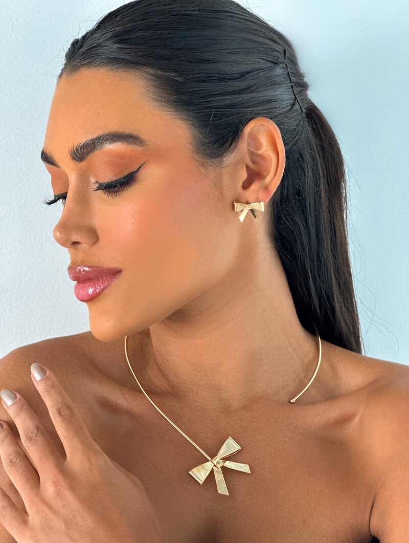 Choker Folheada a Ouro 18k Meio Aro com Laço