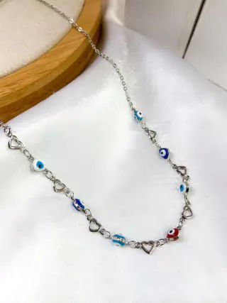 Choker Folheada A Ouro Mini Corações E Olho Grego - Níquel