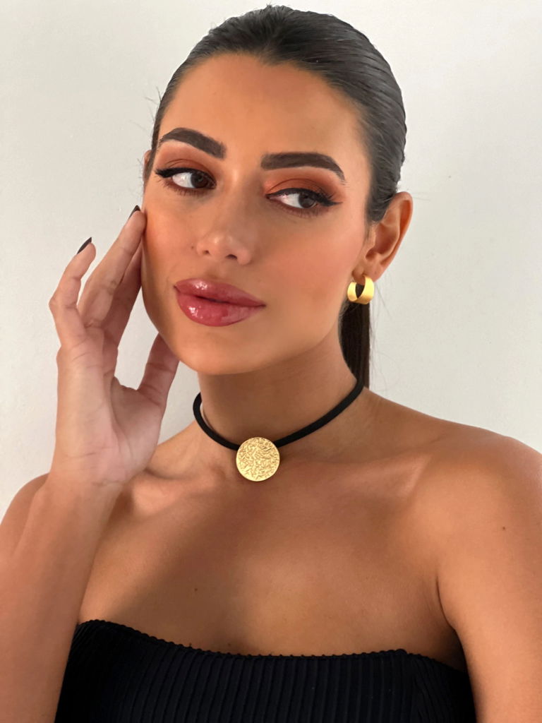 2. CHOKER FOLHEADO A OURO 18K BOTTON TEXTURIZADO.
