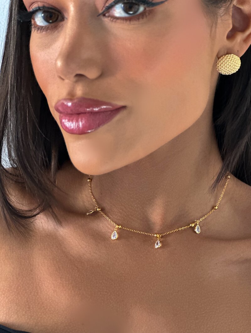 2. Choker folheado a ouro 18k com gotas de zircônias.