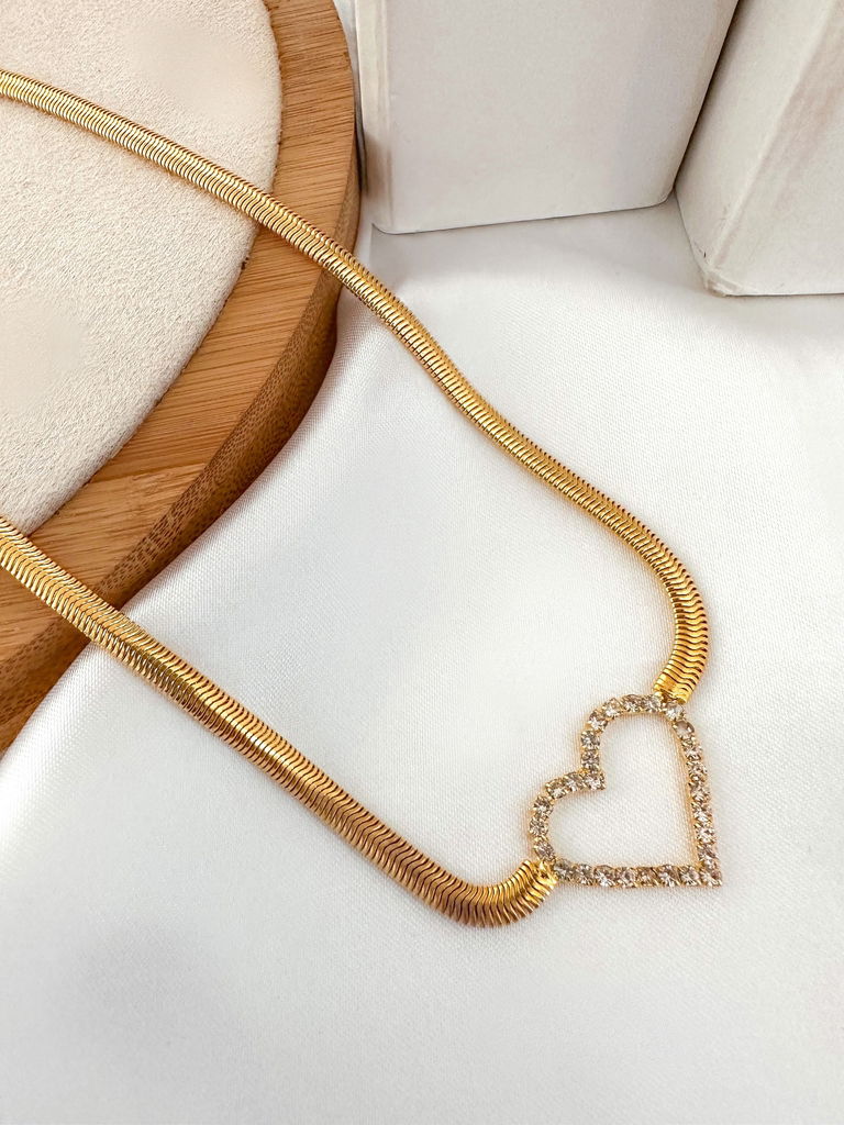 choker folheado a ouro 18k corrente malha com coração vazado em micro zircônias