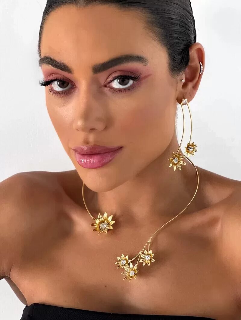 Choker Folheado a Ouro 18k e Prata 925 Aro com Flores