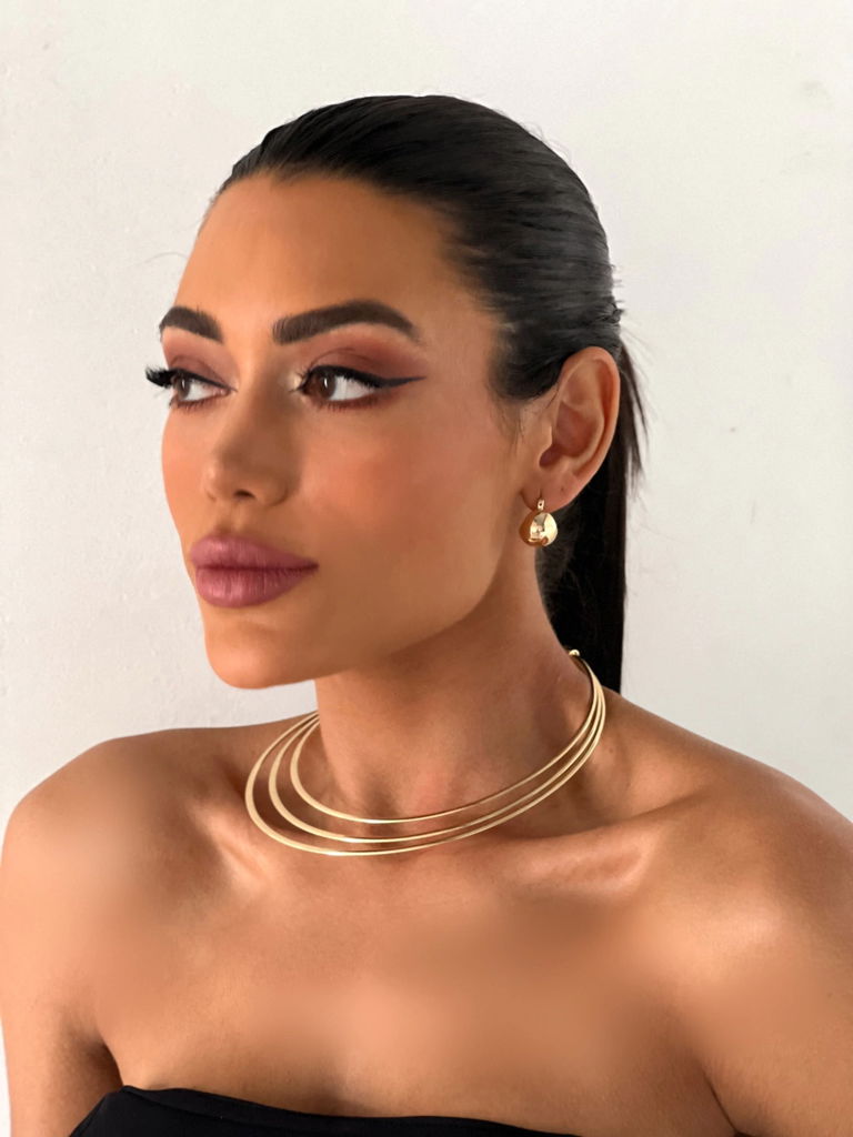 CHOKER FOLHEADO A OURO 18K E PRATA 925 ARO TRÊS FIOS.