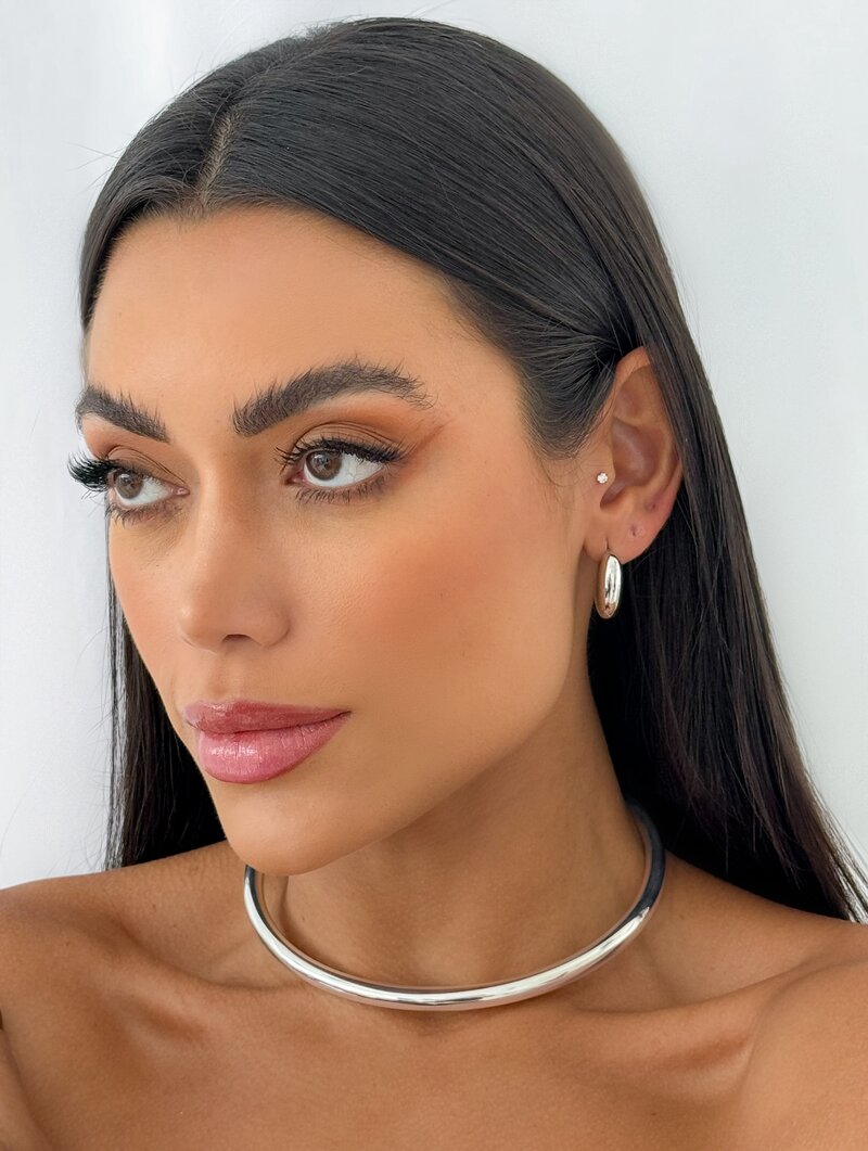 Choker Folheado a Ouro 18k e Prata Aro Boloado Liso