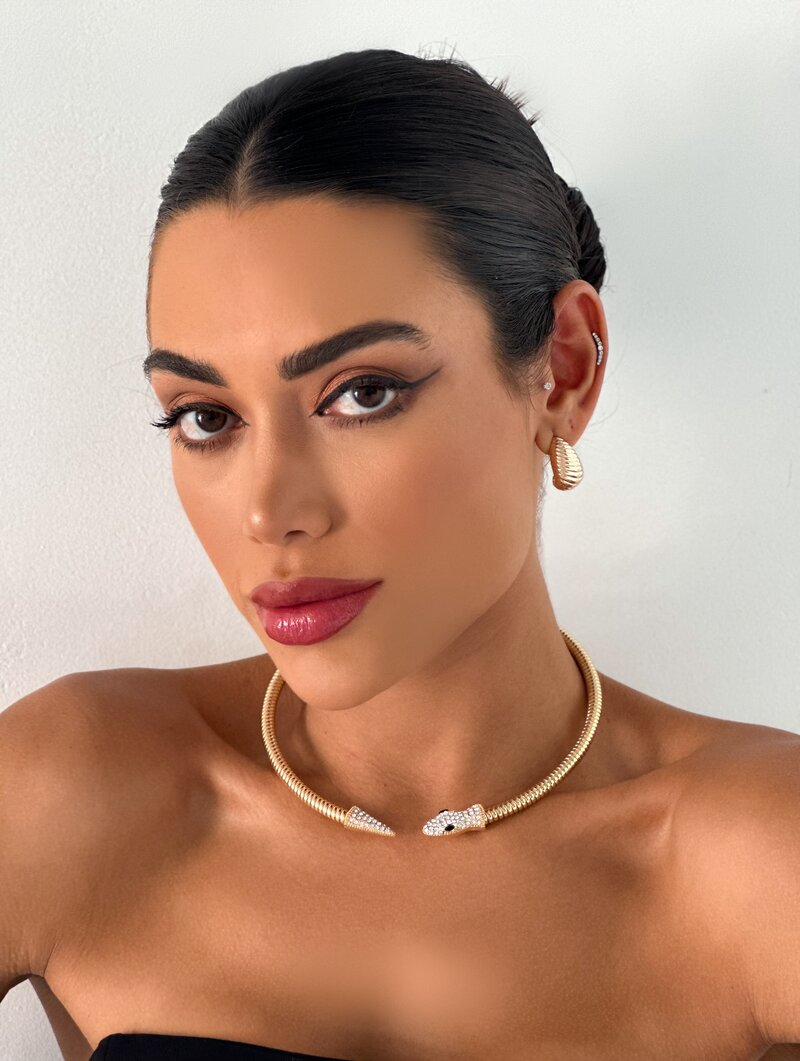 3. Choker Folheado a Ouro 18k e Prata Aro Serpente com Detalhe Cravejado