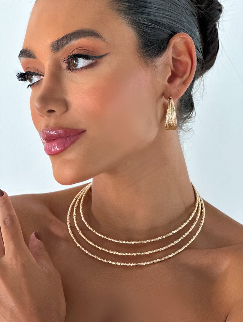 3. Choker Folheado a Ouro 18k e Prata Aro Três Fios Texturizados