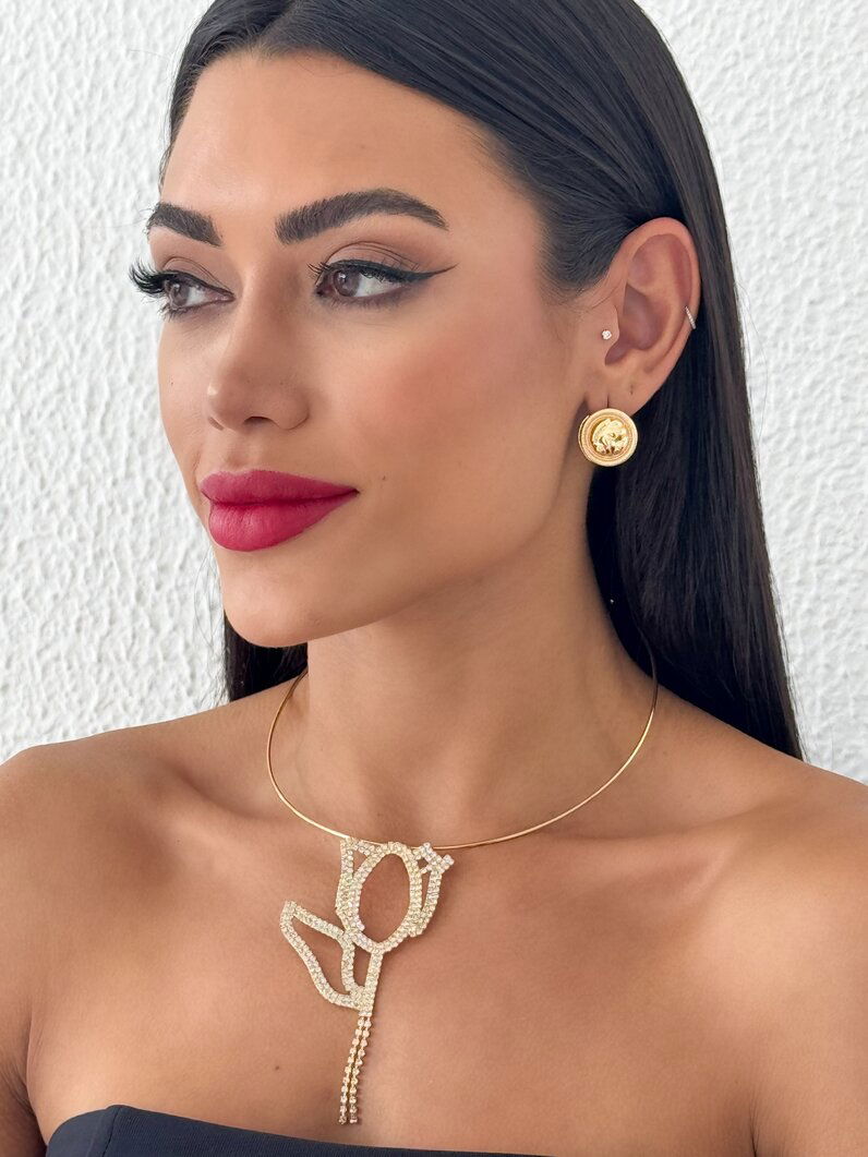 Choker Folheado a Ouro 18k e Prata Maxi Flor Cravejada