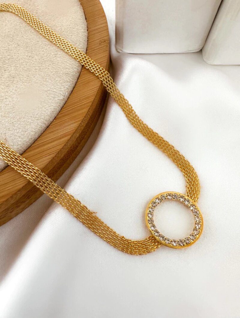 2. Choker manta folheado a ouro 18k com circulo vazado de zircônia
