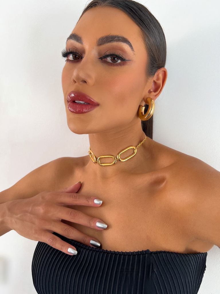 3. Choker oval inspiração blogger folheada a ouro 18k.