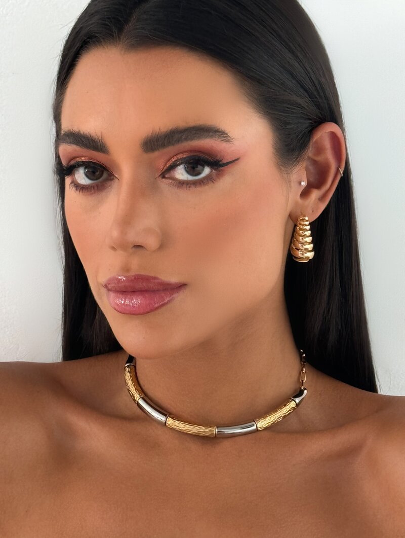 3. Choker Semi Joia Mix Banho Aro com Detalhe Texturizado